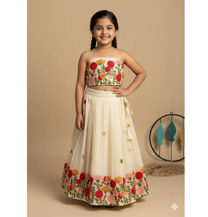 Be the first to review “Cream Floral Embroidered Lehenga Choli Set for Girls”